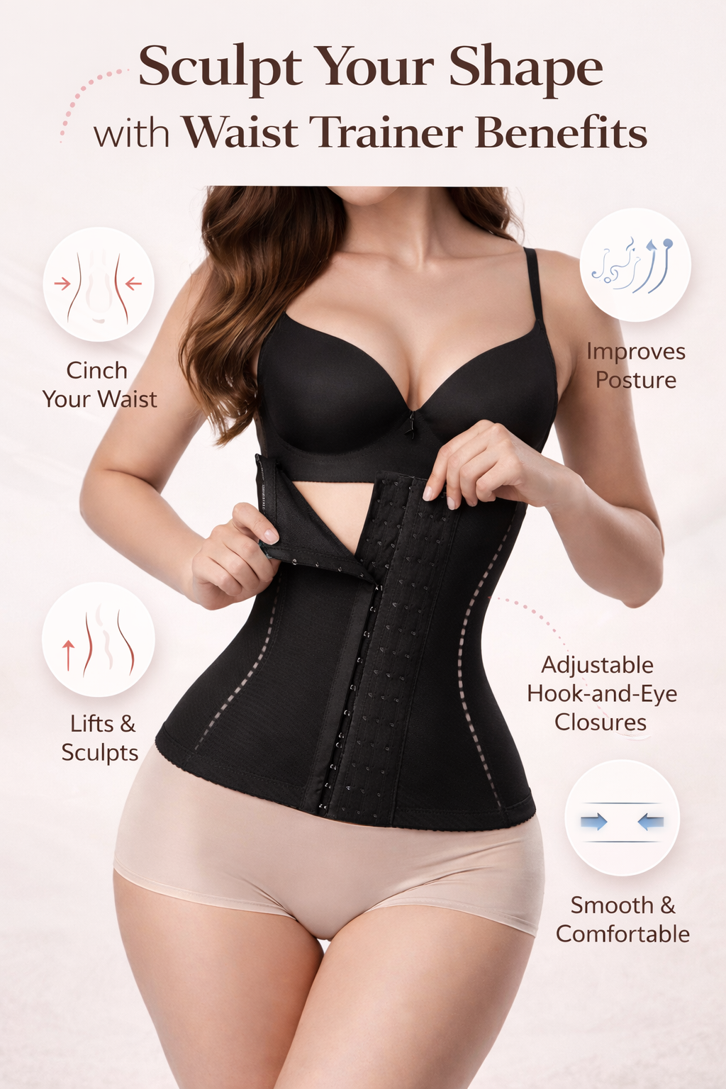 Achieve a slimmer waist and beautifully defined curves with our High Compression Waist Trainer Corset, designed to sculpt your midsection while providing firm support and all-day comfort.